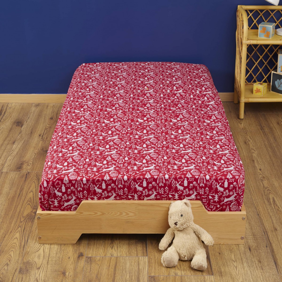 Le motif Noël du drap housse habillera parfaitement le lit de votre enfant.