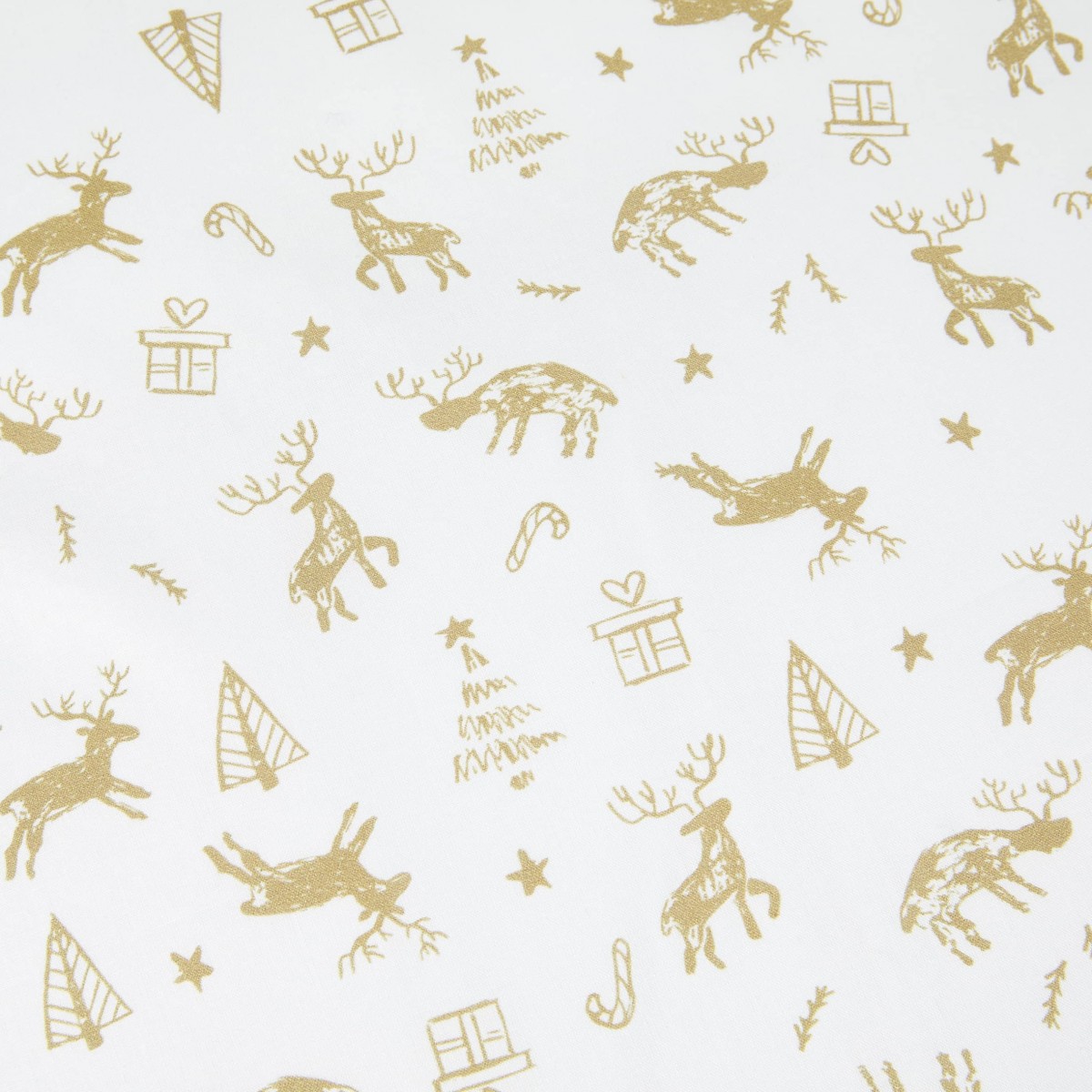 Apportez une touche de fantaisie à la chambre de votre enfant avec la parure Noël Rennes Dorés ! Cette parure de lit est fabriquée en coton.